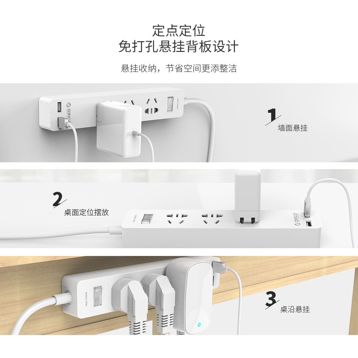懸掛式新國標(biāo)3AC口2usb口智能家居排插(快充版)