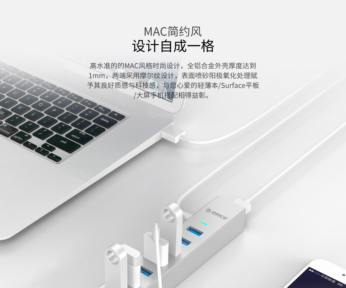 7口鋁合金USB3.0分線器,分離式數(shù)據(jù)線