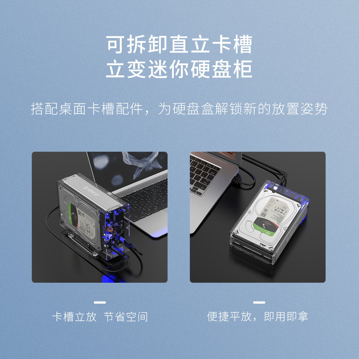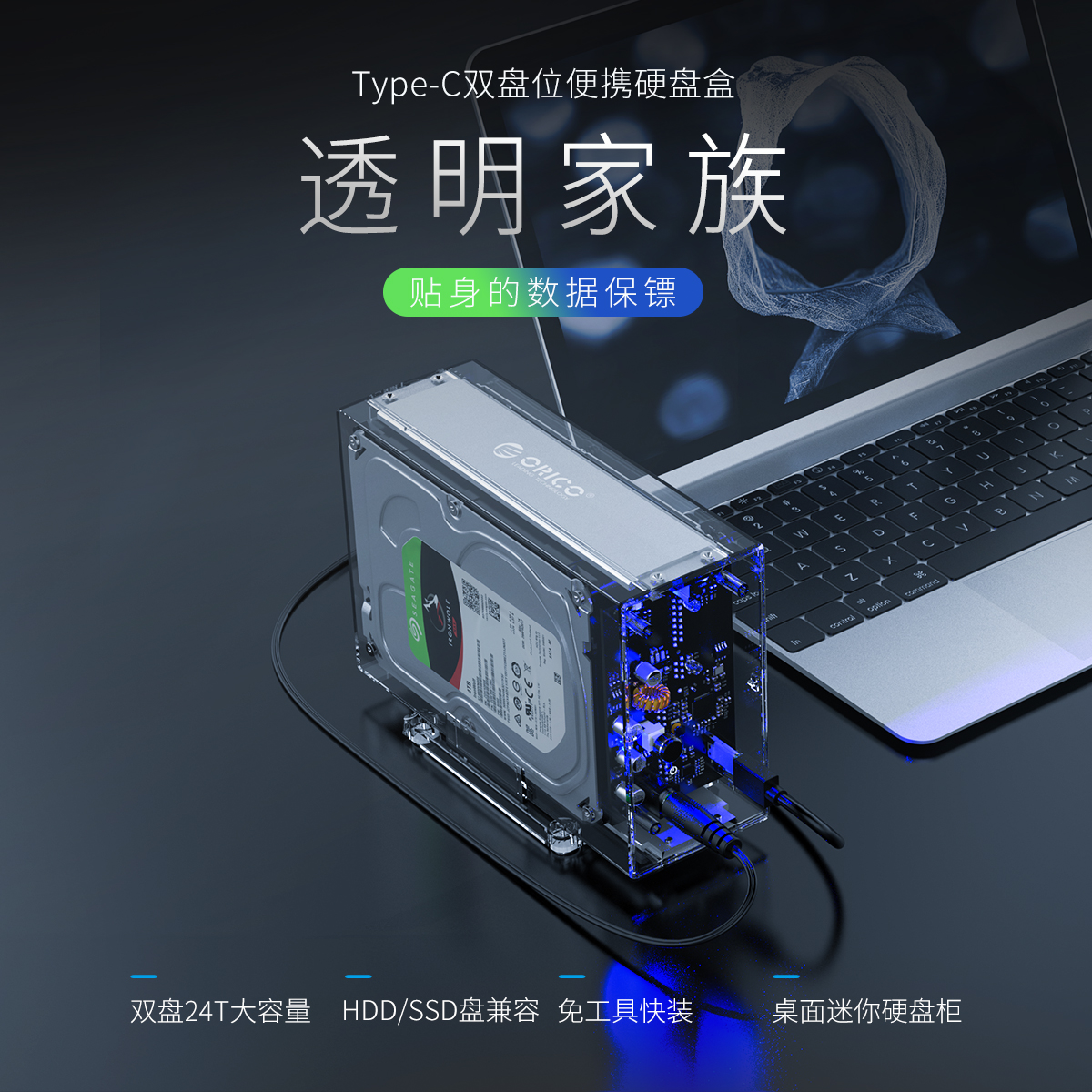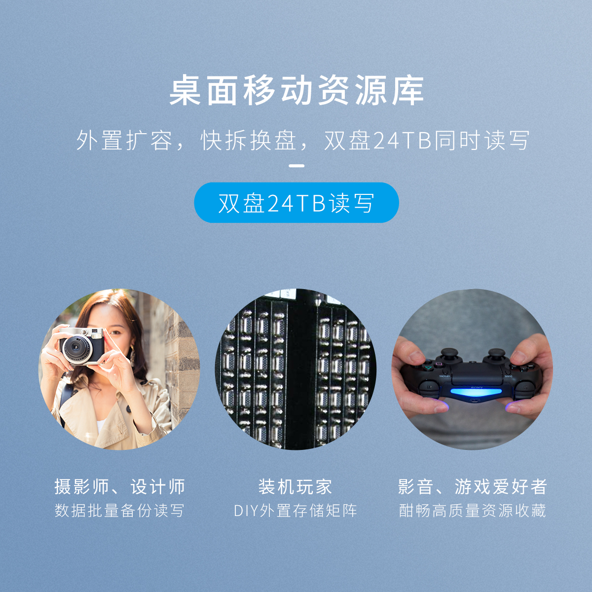 全景透視外殼,盡顯透明真芯,雙盤24T大容量,免工具快速安裝,當(dāng)你的桌面迷你硬盤柜