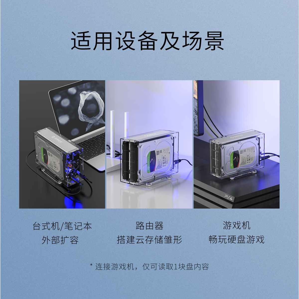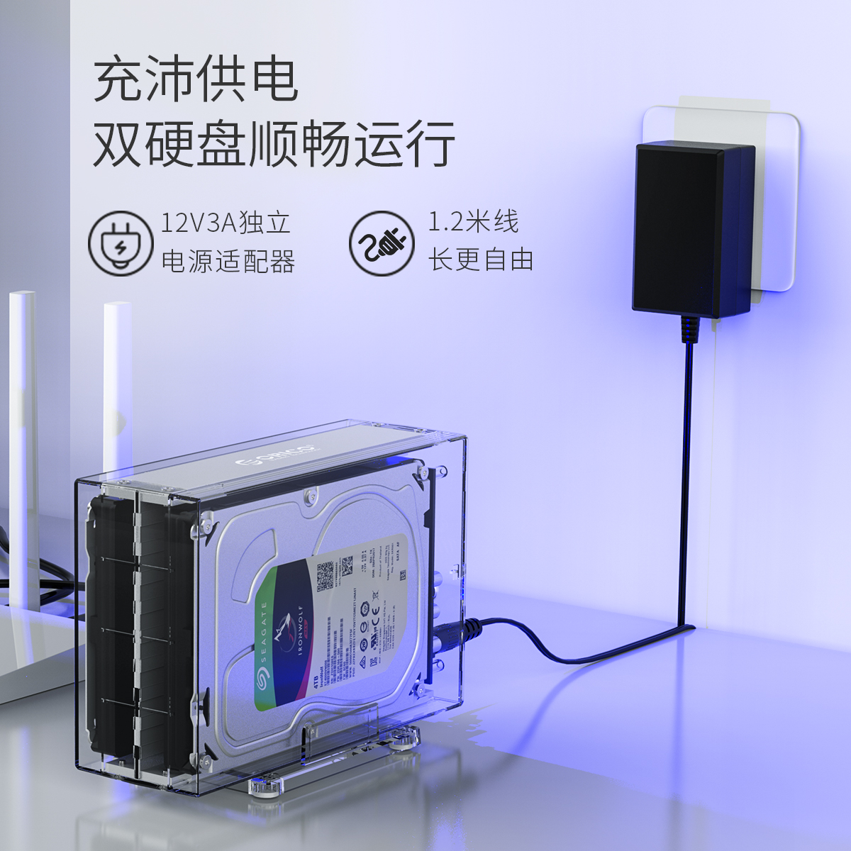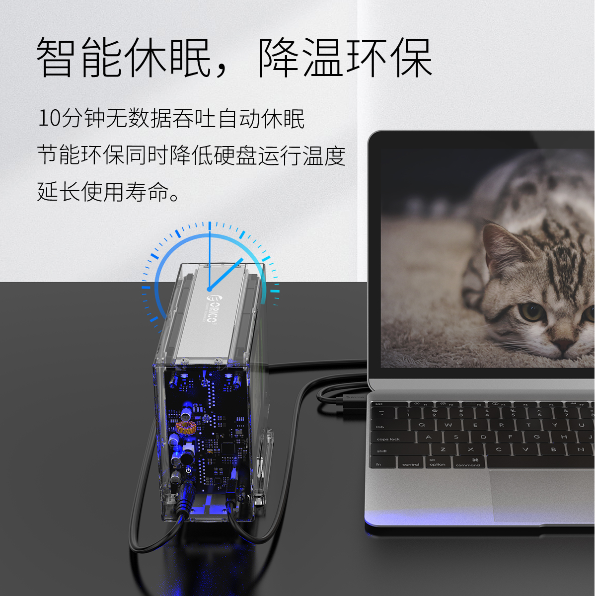 全景透視外殼,盡顯透明真芯,雙盤24T大容量,免工具快速安裝,當(dāng)你的桌面迷你硬盤柜
