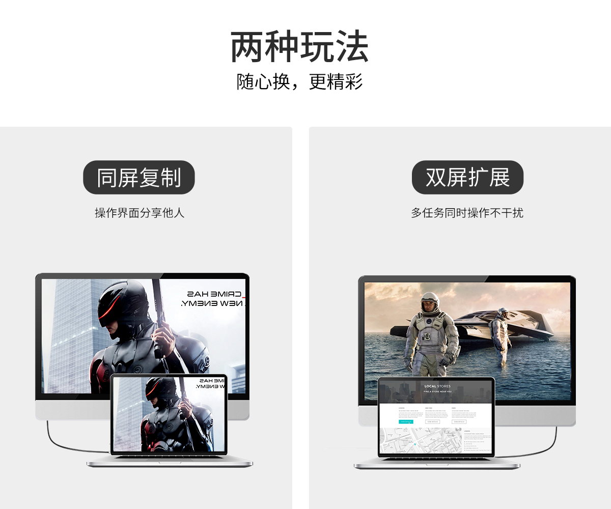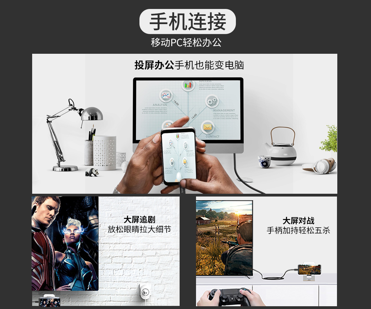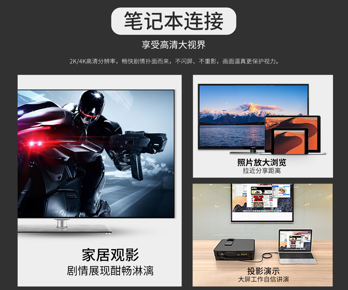 投屏辦公,同屏雙屏,即插即用,便攜,免驅,耐彎折,1.8m長距離擴展,手機,電腦,電視輕松同步