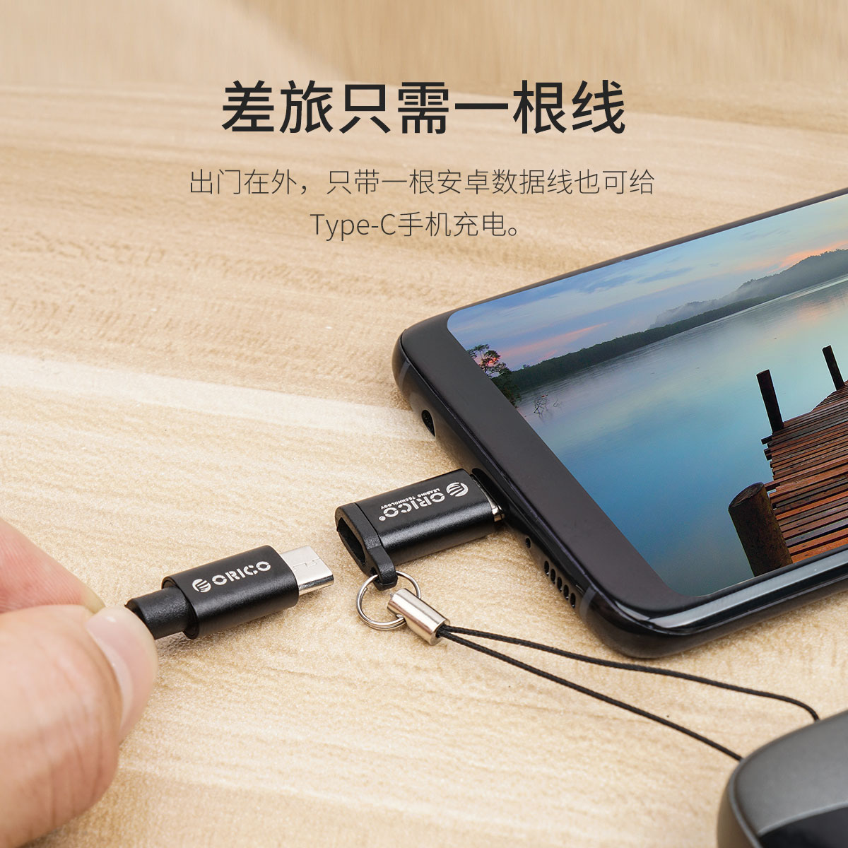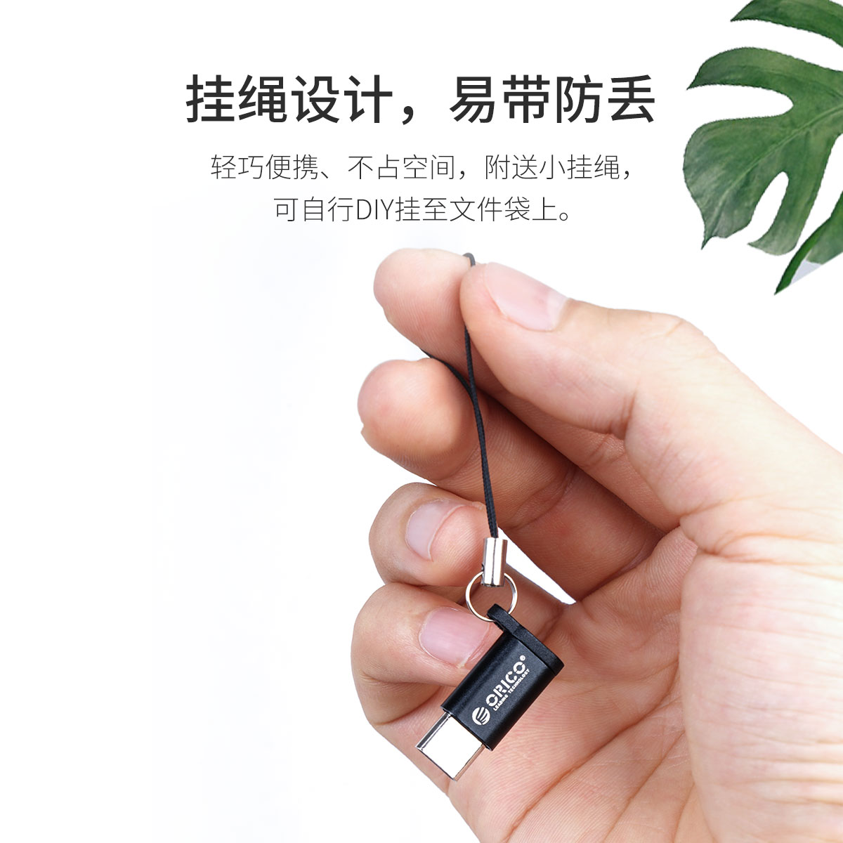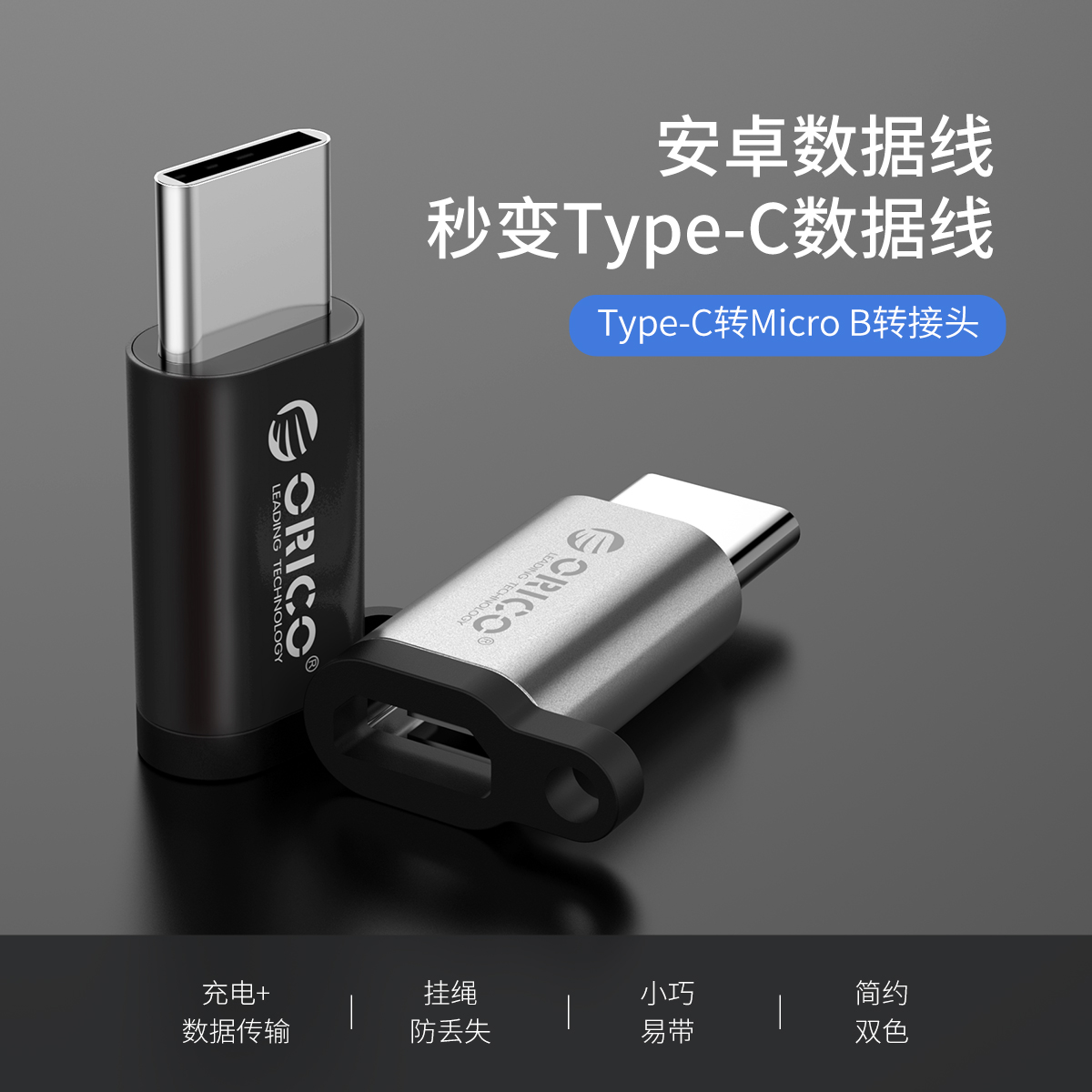 黑色Type-c轉Micro B轉接頭,充電+傳輸,掛繩防丟失,小巧易帶,簡約銀色