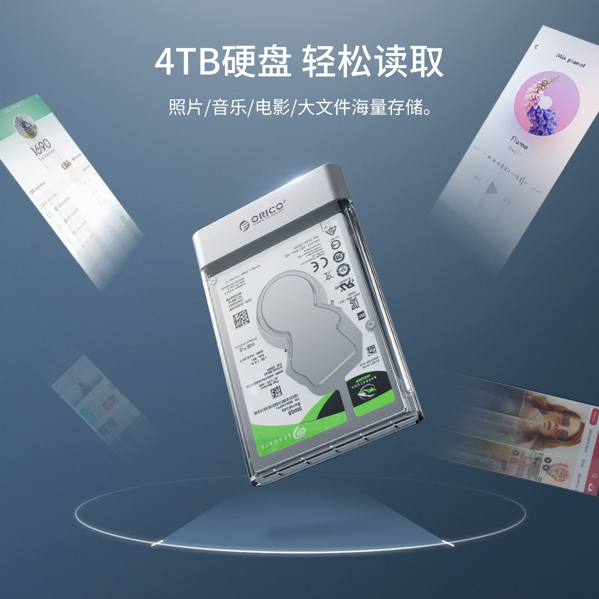 1GB文件高速秒傳,透明+金屬工藝碰撞,4TB硬盤輕松讀取,免工具快速安裝