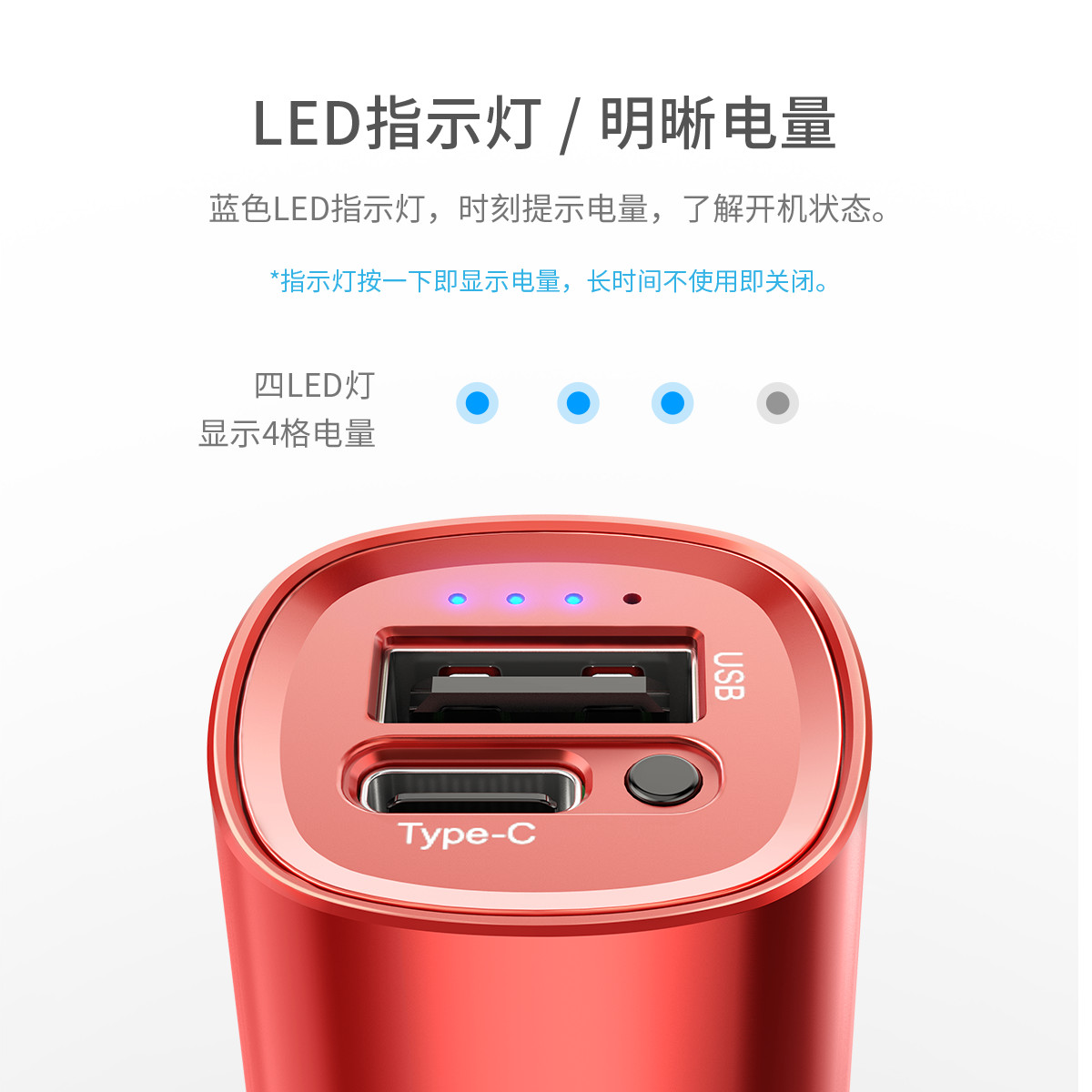 口紅設(shè)計(jì)元素,3200mAh容量,強(qiáng)悍兼容多系統(tǒng),鋁合金+塑膠外殼,身材小巧,LED指示燈