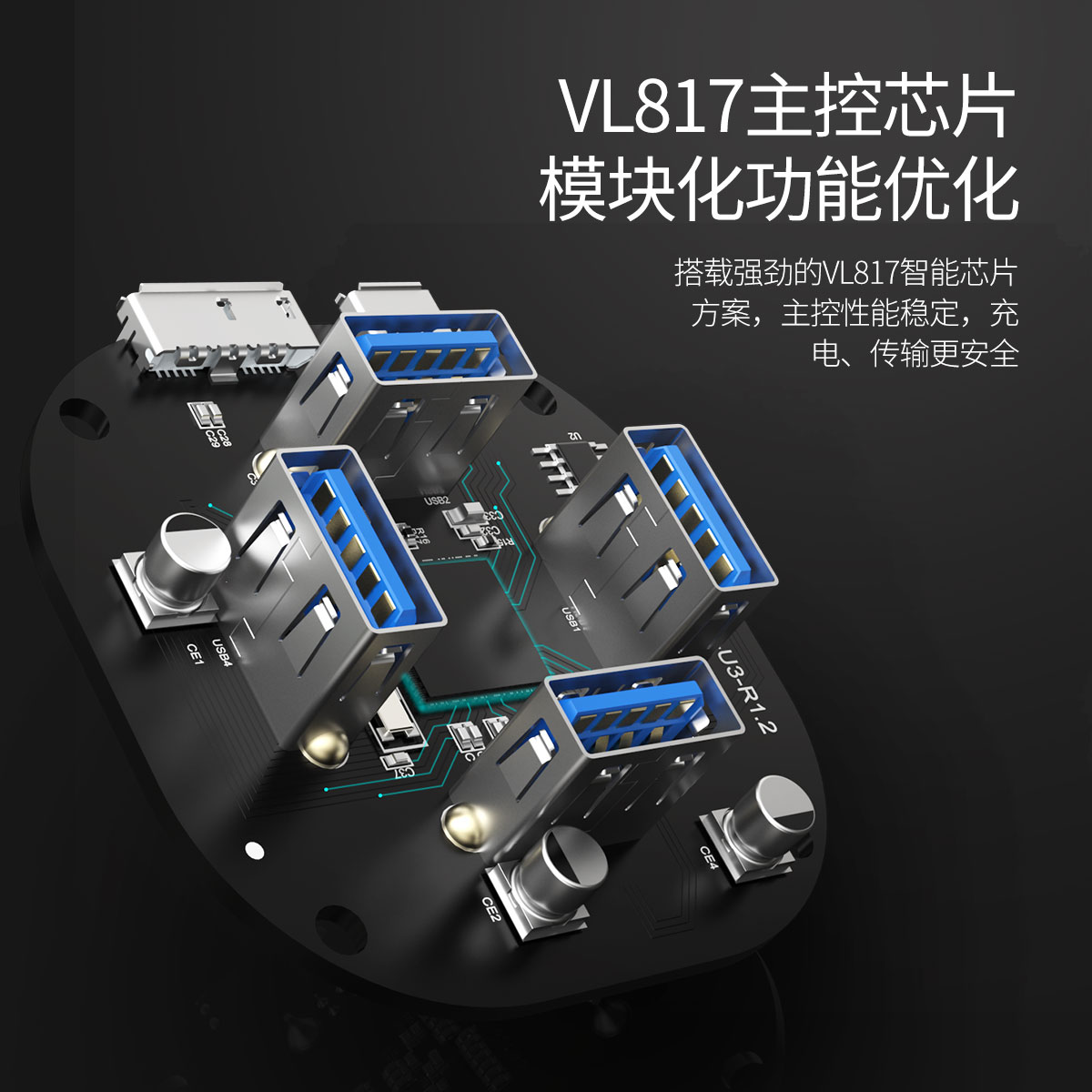 透明外殼,四口USB 3.0擴展所需,5Gbps疾速傳輸,獨立供電口,VL817主控