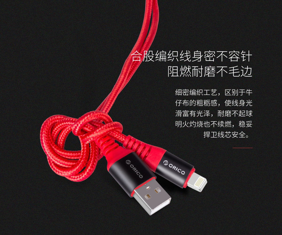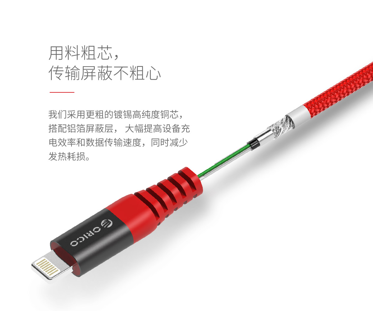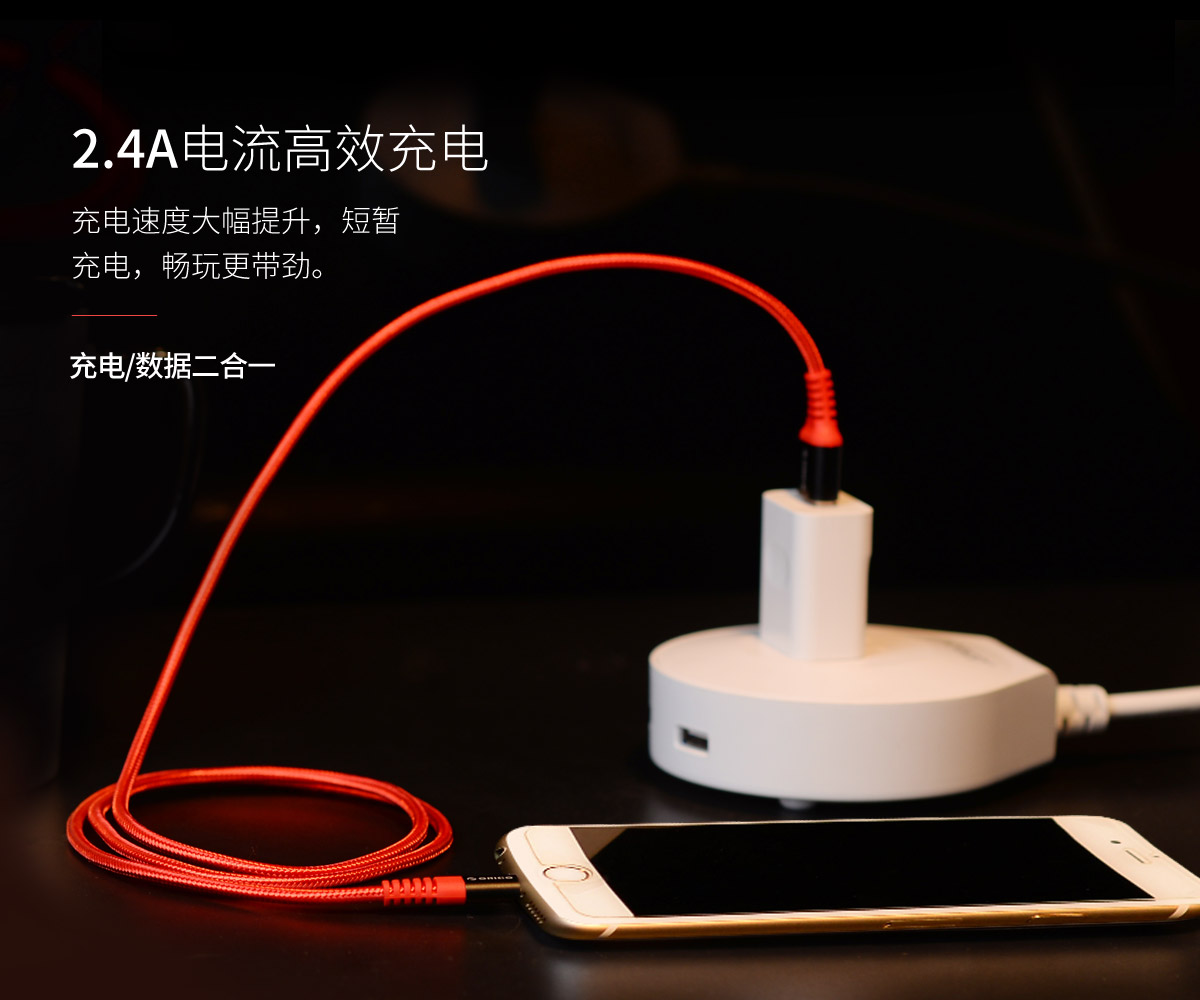 紅色芳綸纖維編織,2.4A大電流,鍍鎳不銹鋼插頭,粗鍍錫高純度銅芯