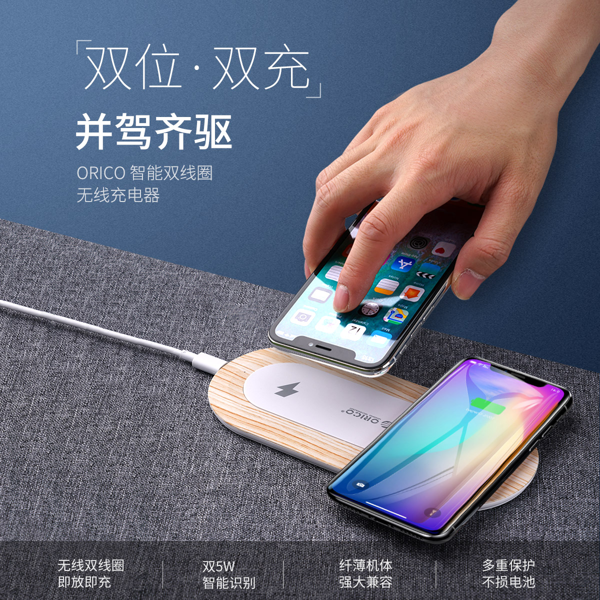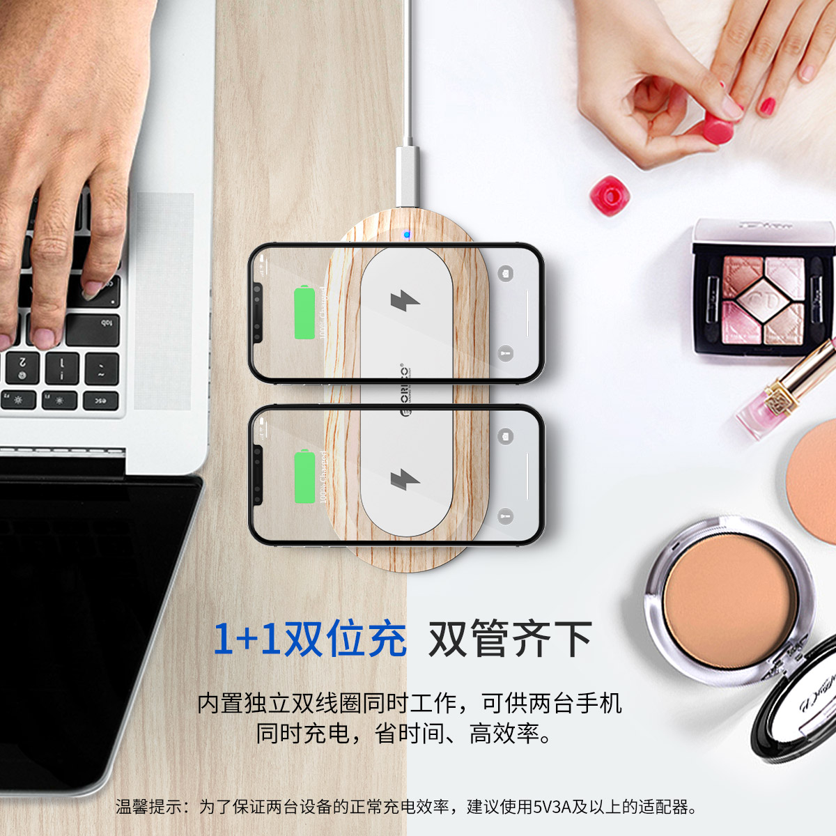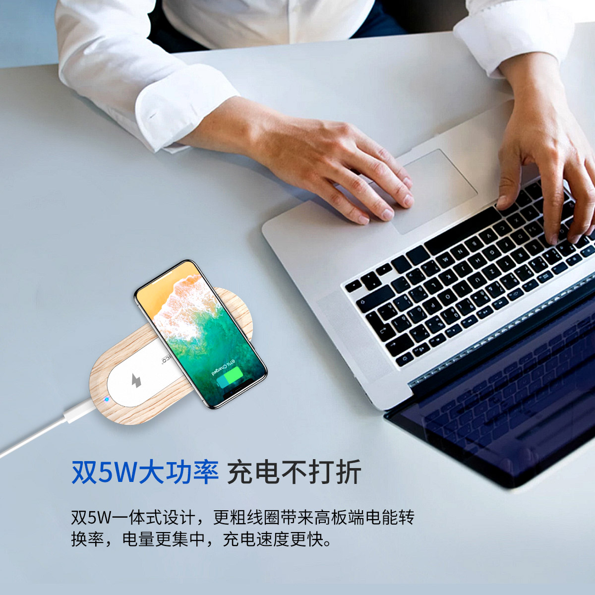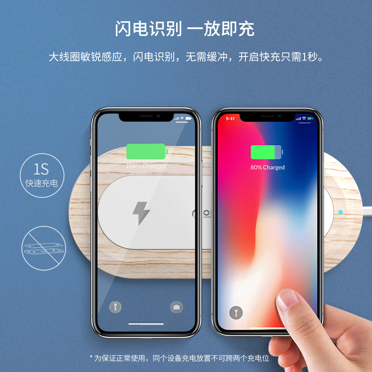 10W木紋智能雙線圈無線充電器