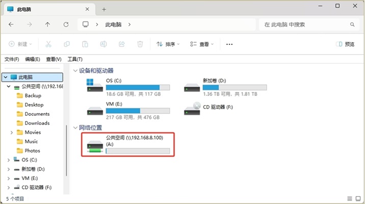 通過(guò)Samba協(xié)議把NAS存儲(chǔ)空間映射到電腦后,即可像電腦上的硬盤(pán)一樣通過(guò)復(fù)制粘貼上傳文件。