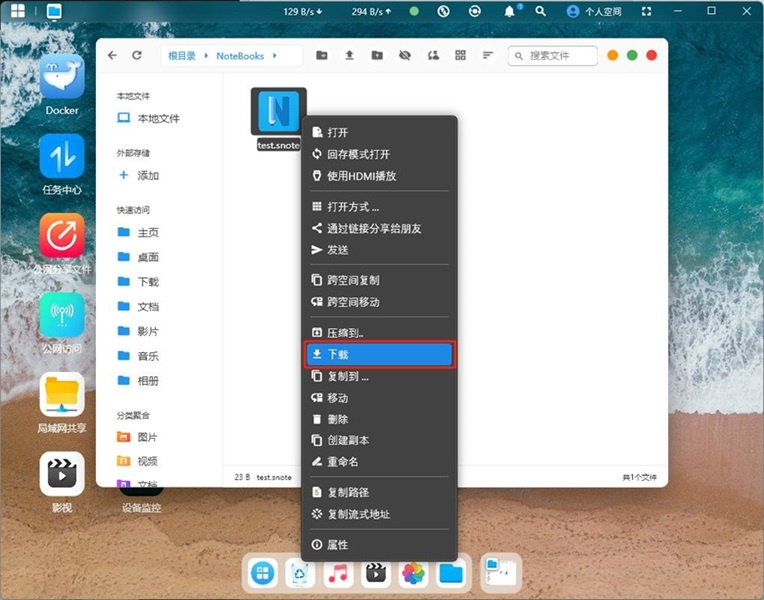 目前有以下幾種方式:文件右鍵選擇下載和通過(guò)Samba下載。